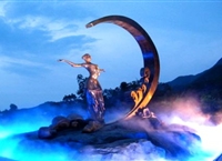 那月宫中寂寞的嫦娥,一定在空中窥见了这如袂如带、拂动于山巅的月光。触景生情,是否回忆起当年无奈飞天时,那眷恋凡间飘浮空中的罗带,这一别,何止千年。而明月山上的人们,举杯邀明月,望见杯中的明月时,则会欣喜地一饮而尽,希望在飘飘欲仙的酒意中,感受一回那飞天的意境。