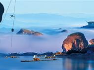 ③ 龙虎山丹霞地貌,风景秀美,乘竹筏漂流芦溪河,感受龙虎山迷人魅力。欣赏绝特悬棺表演,破解春秋战国时期崖墓群千年之谜。
